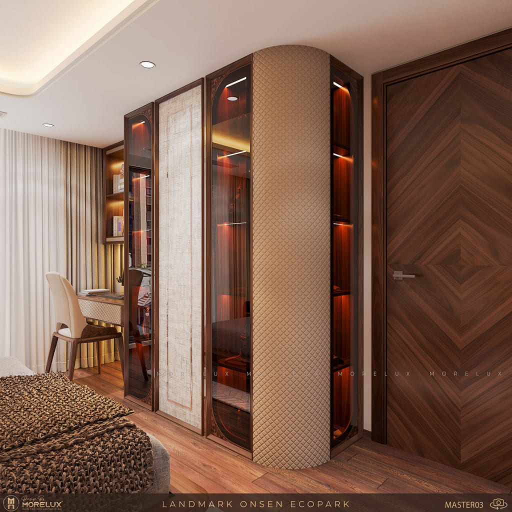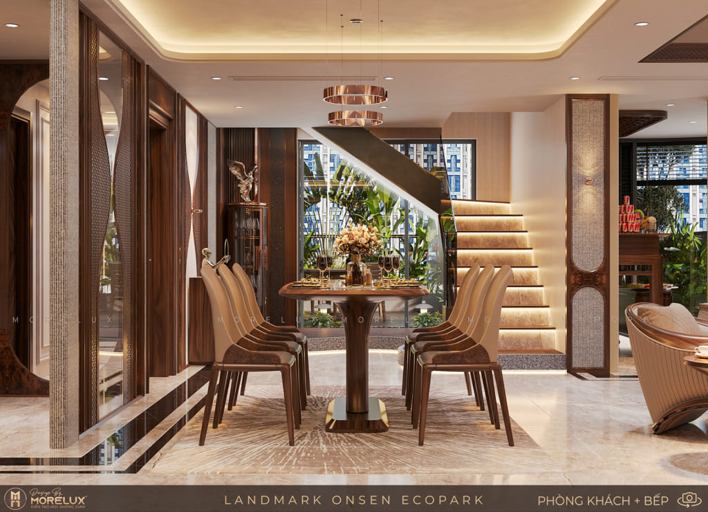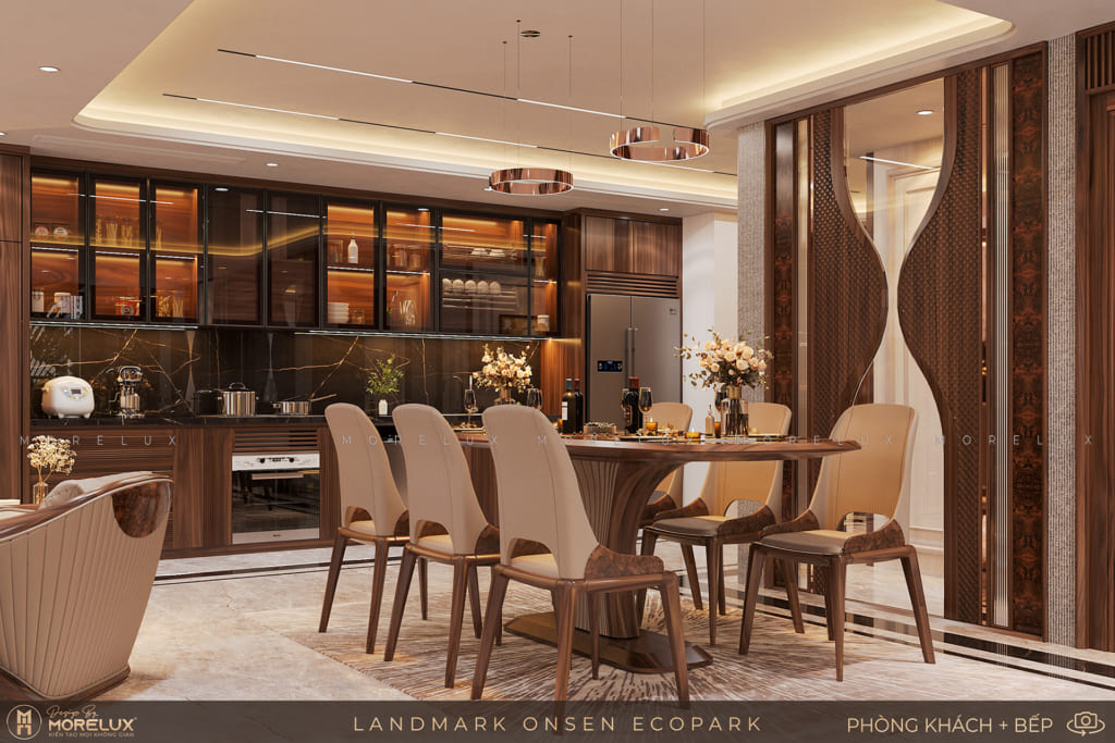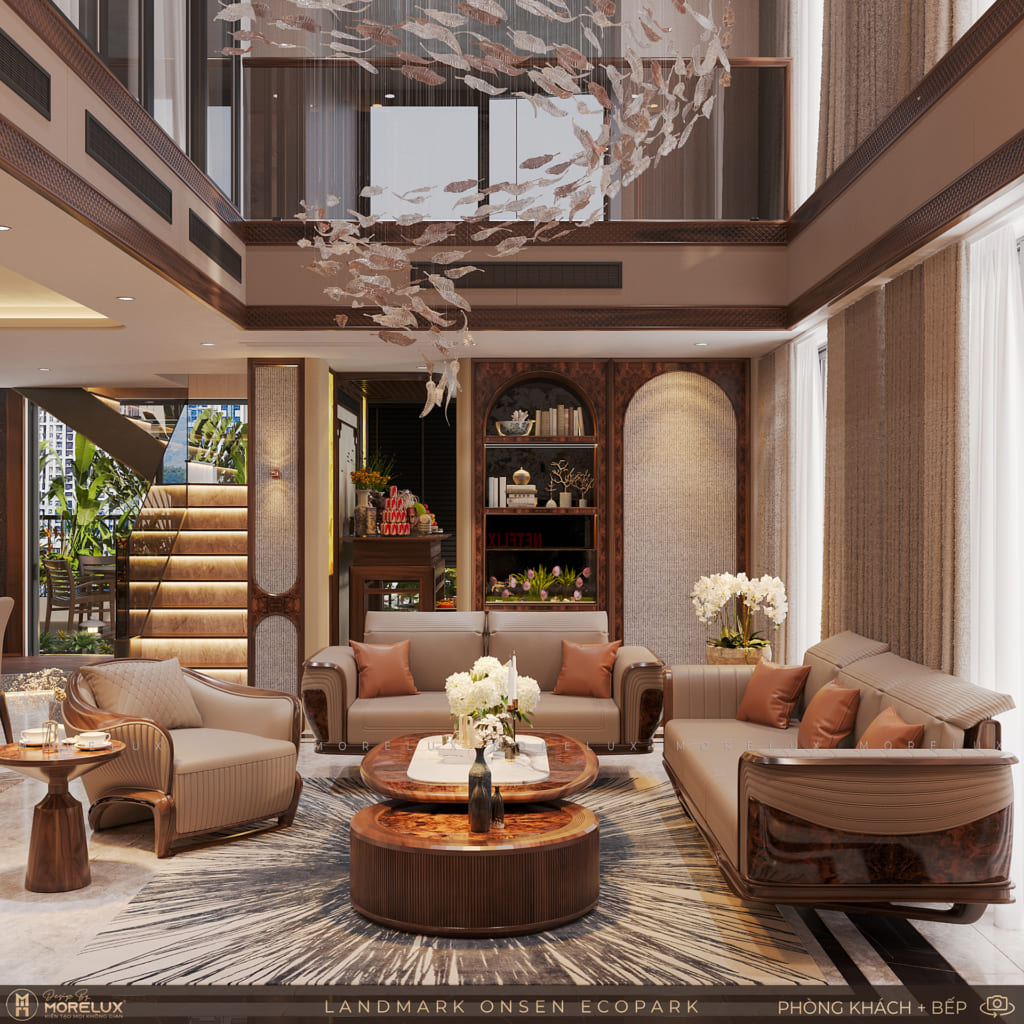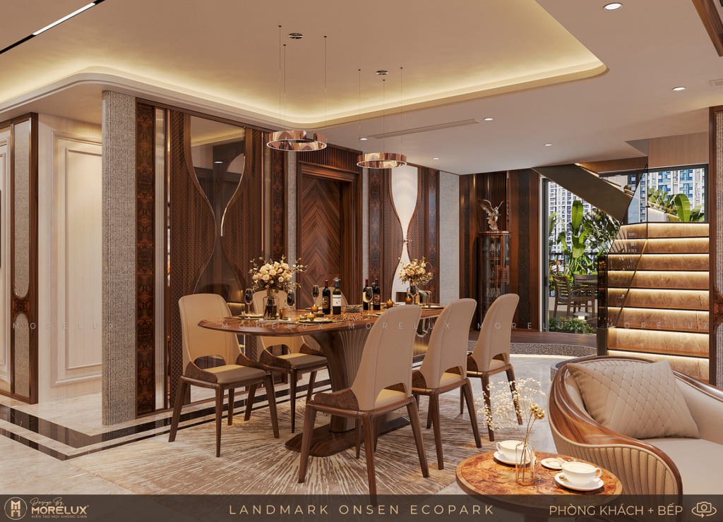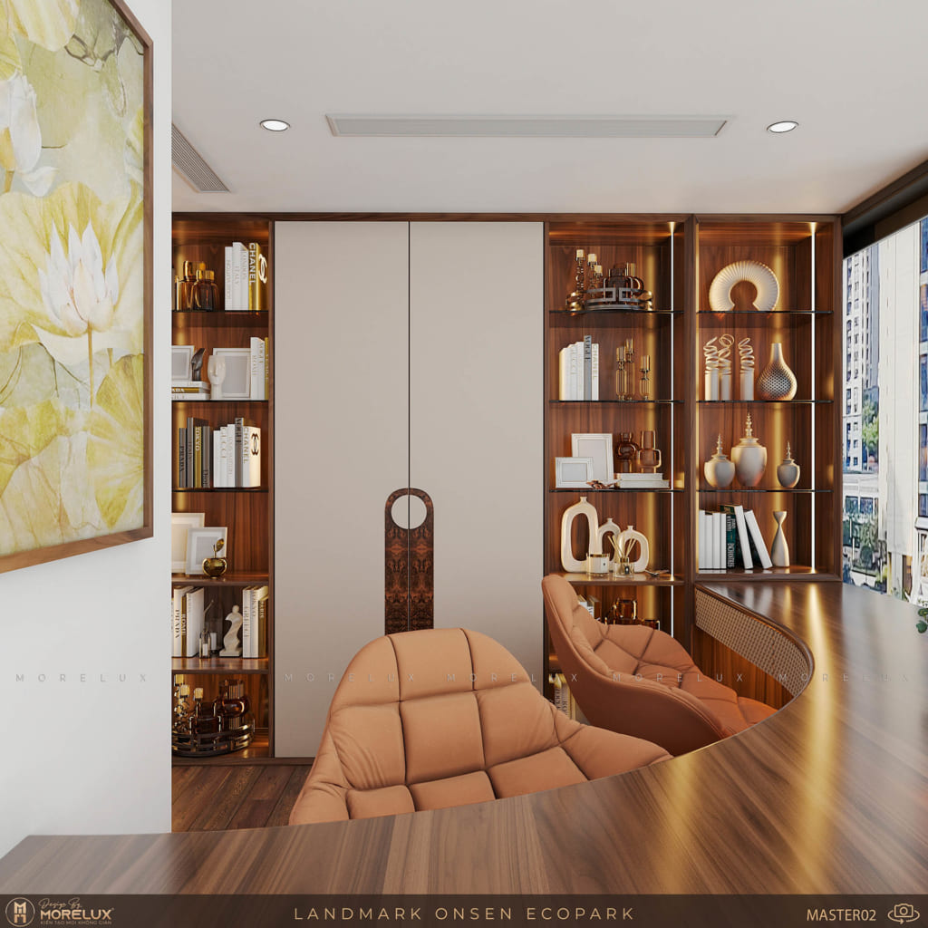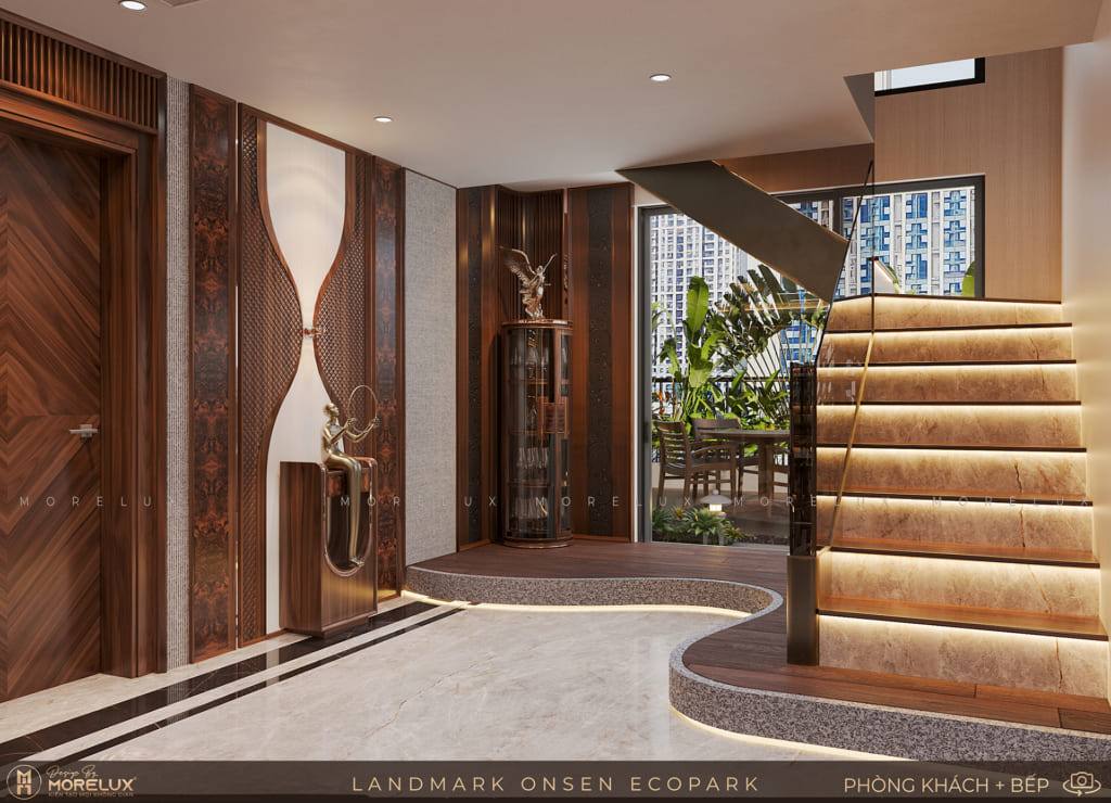 Giữa khung cảnh thiên nhiên tại đảo cọ Ecopark, căn hộ Duplex Onsen đã được MORELUX kiến tạo lại hoàn toàn. Với phong cách hiện đại cùng vật liệu gỗ óc chó cao cấp, không gian này giờ đây mang ngôn ngữ thiết kế và đường nét thẩm mỹ tiên phong, định hình xu hướng tương lai.