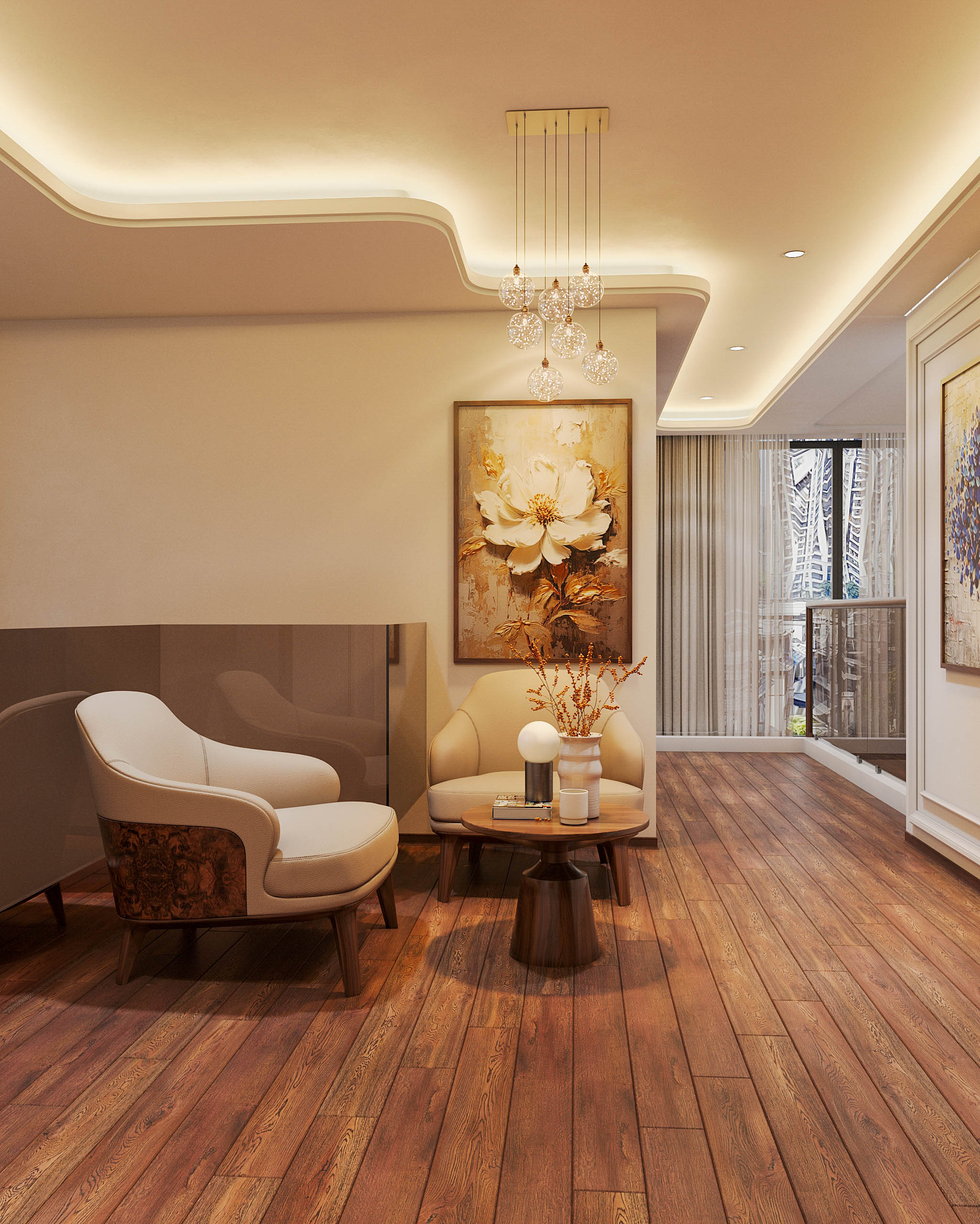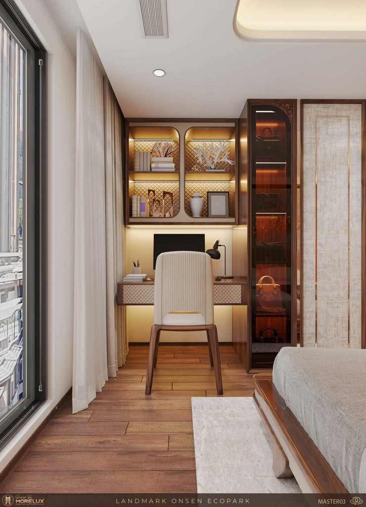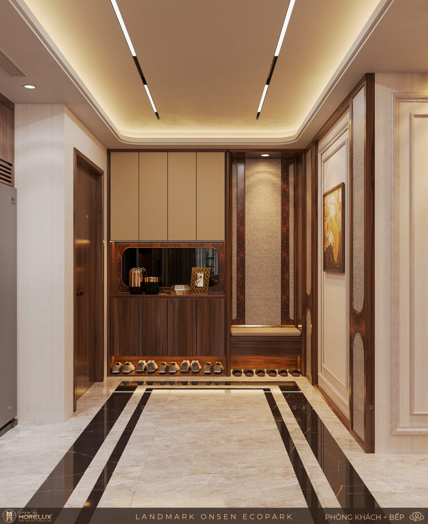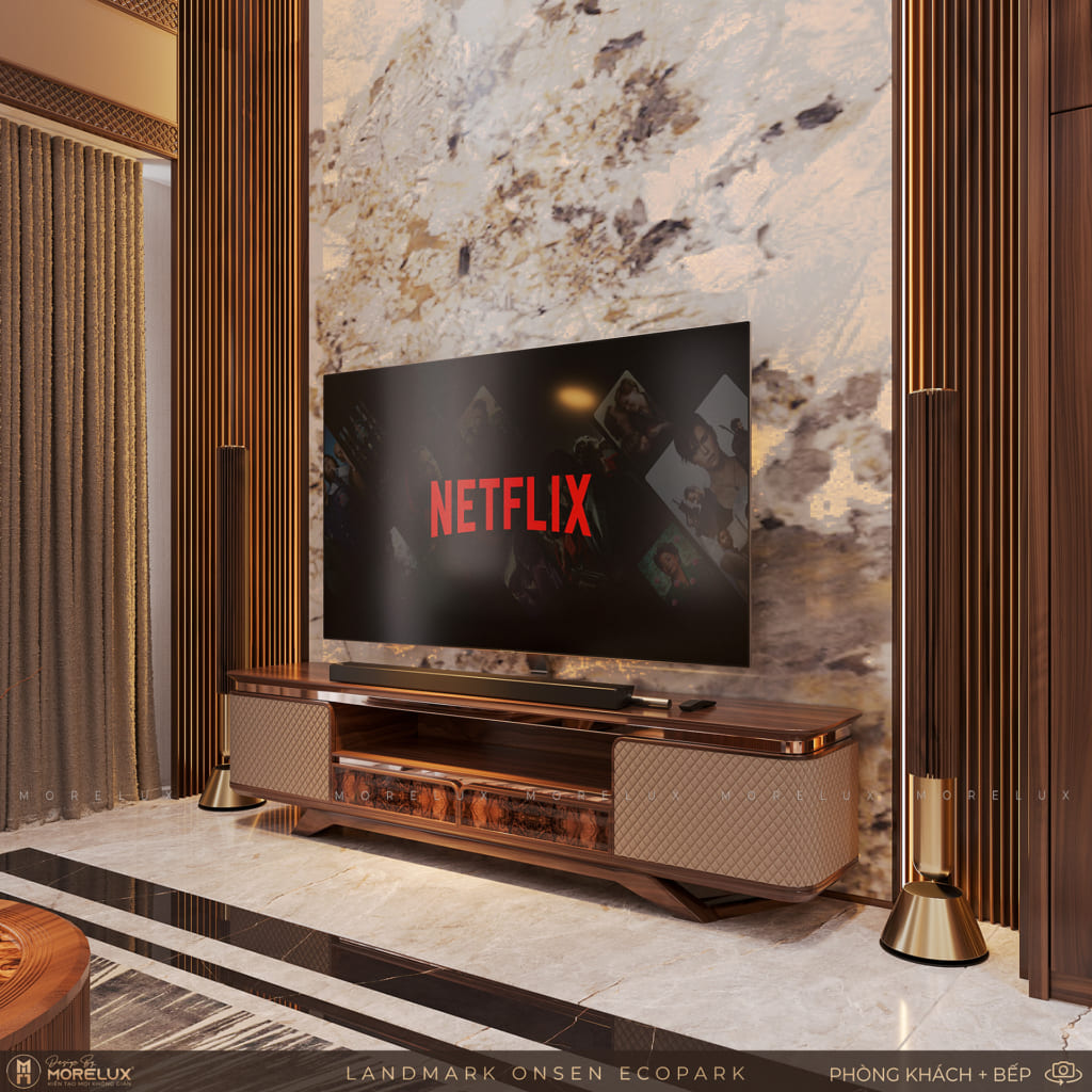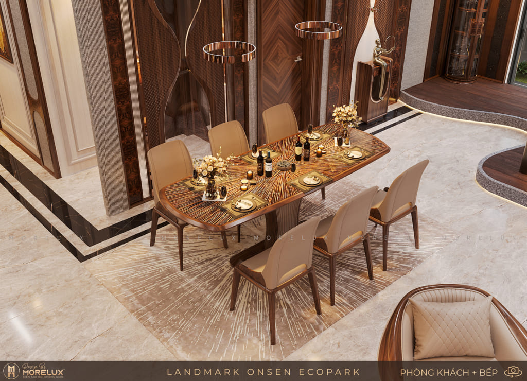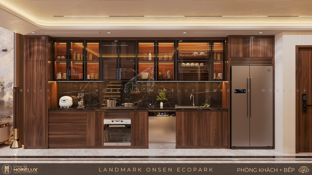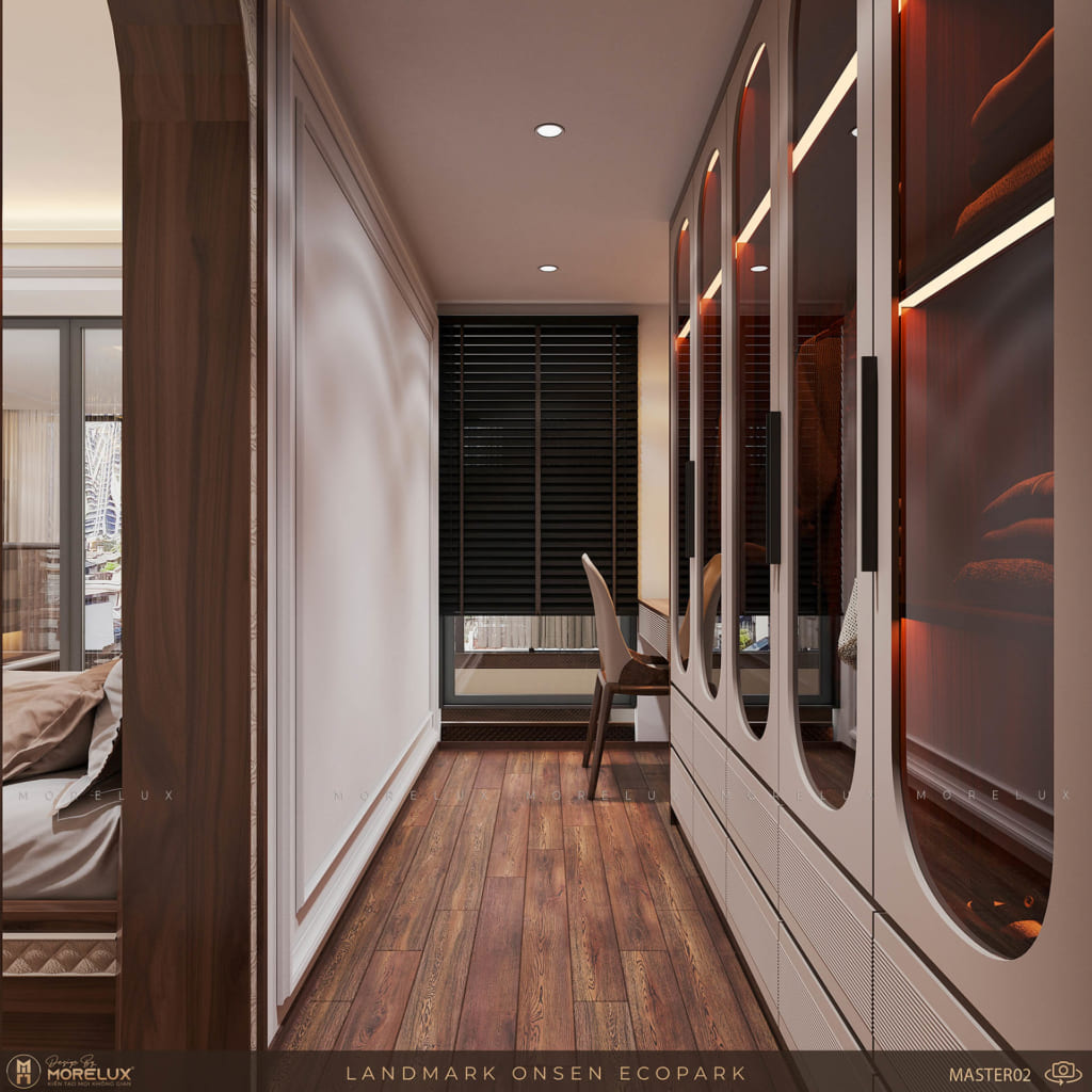Giữa khung cảnh thiên nhiên tại đảo cọ Ecopark, căn hộ Duplex Onsen đã được MORELUX kiến tạo lại hoàn toàn. Với phong cách hiện đại cùng vật liệu gỗ óc chó cao cấp, không gian này giờ đây mang ngôn ngữ thiết kế và đường nét thẩm mỹ tiên phong, định hình xu hướng tương lai.