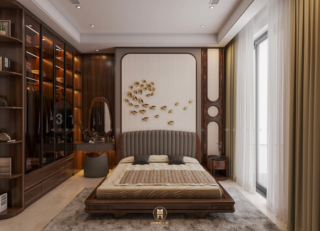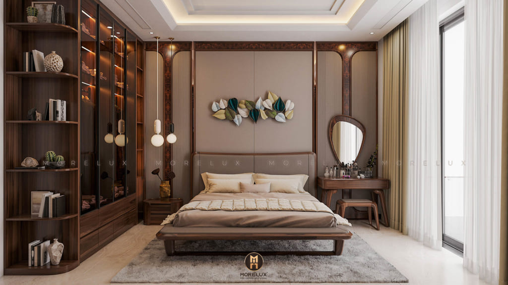 Được thiết kế thông minh với việc tối đa hóa ánh sáng tự nhiên qua rèm cửa mỏng, kết hợp hài hòa với hệ thống chiếu sáng hiện đại, mang đến vẻ sáng thoáng và tràn ngập sự ấm cúng. Mọi chi tiết đều phản ánh sự tinh tế và đẳng cấp, nổi bật cùng chất liệu gỗ óc chó – biểu tượng của sự sang trọng tự thân và gu thẩm mỹ vượt xa những tiêu chuẩn thông thường.